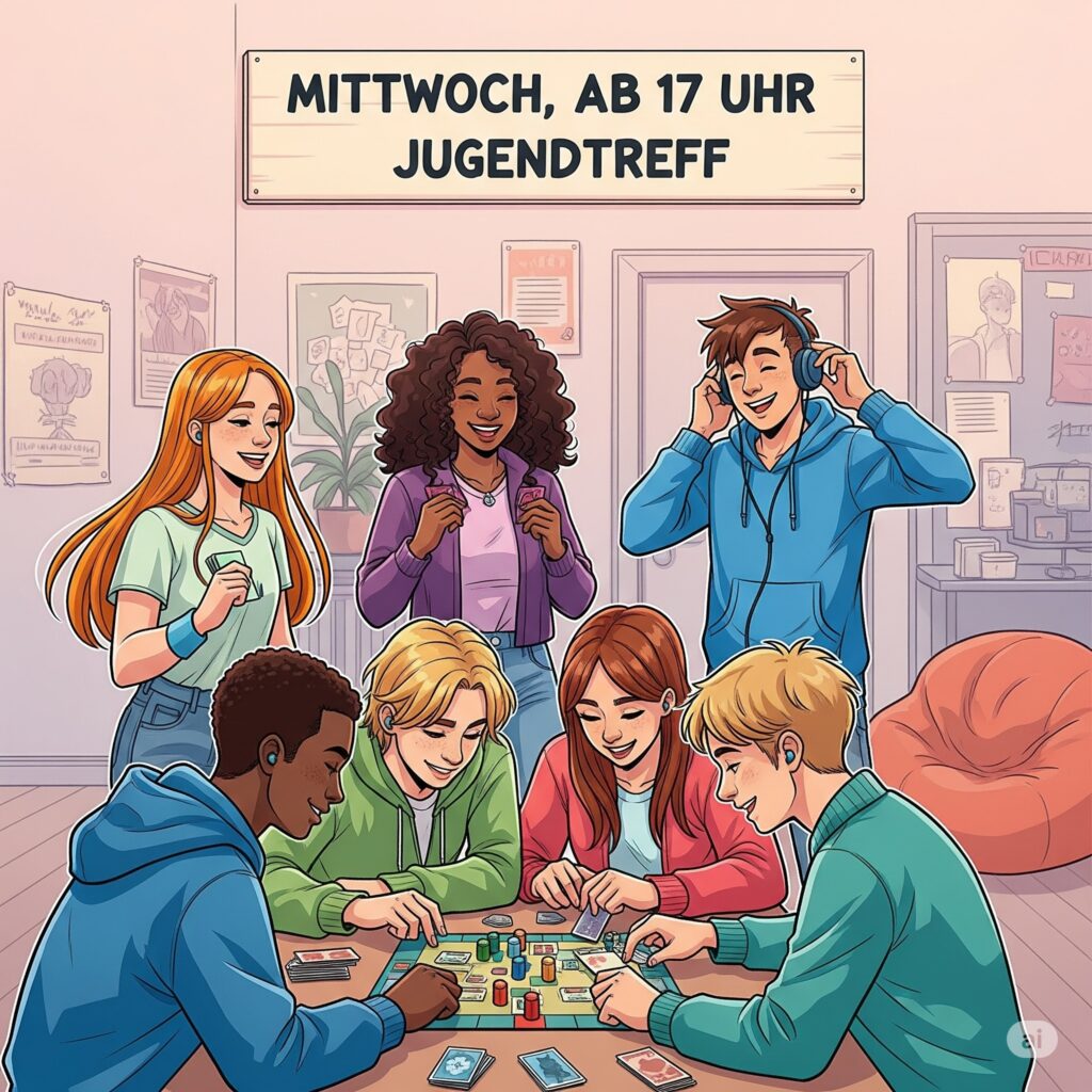 Lust auf andere junge Leute, gute Gespräche, Musik, Snacks und Spaß? Dann komm vorbei zum Jugendtreff!
